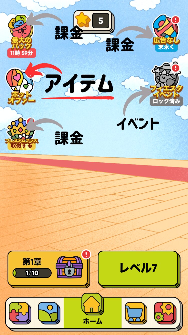 ゲーム中に広告動画が差し込まれることはないため、パズルプレイ中はストレスフリーです。