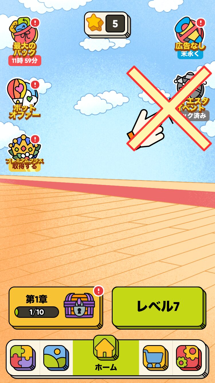 また、パズルゲームではたまに広告視聴によりステージスキップできるアプリもありますが、このゲームは広告によるステージスキップはありませんでした