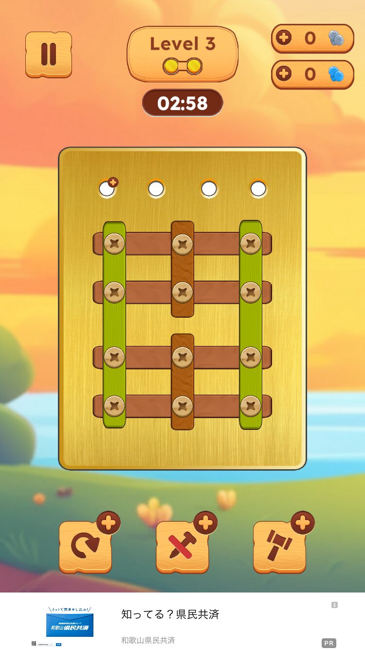 デイリーボーナスやステージクリア報酬で青色ネジ・灰色ネジを入手しておくと、広告視聴せずにアイテムを使用することもできます。