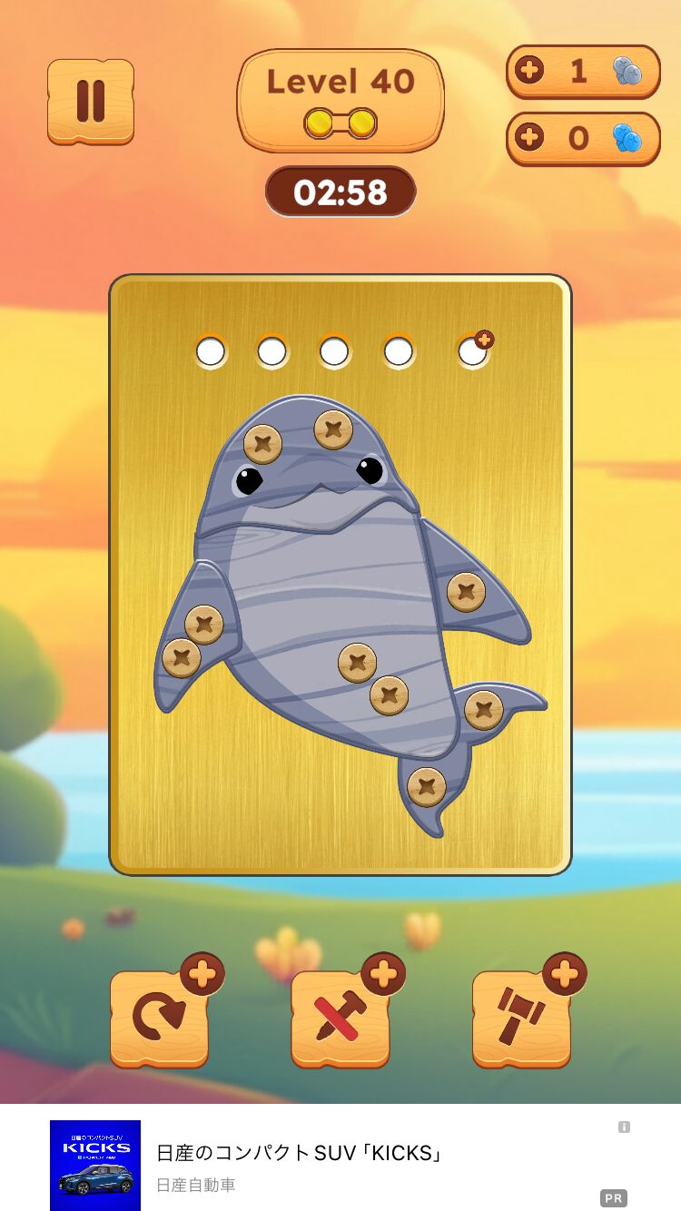 広告視聴やアイテムでネジ穴を増やすこともできるためクリア不可能なレベルはないですが、ある程度は広告に頼る前提で考えておいたほうがよいでしょう。