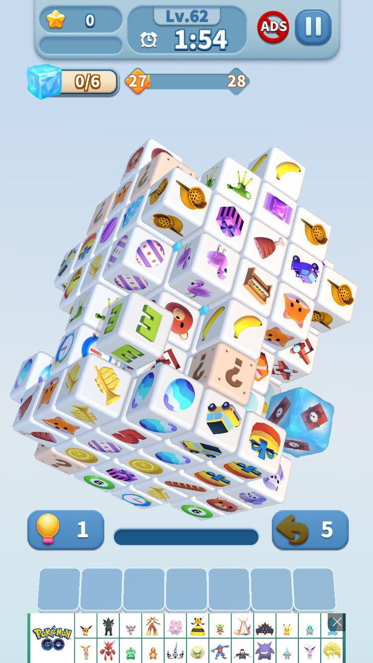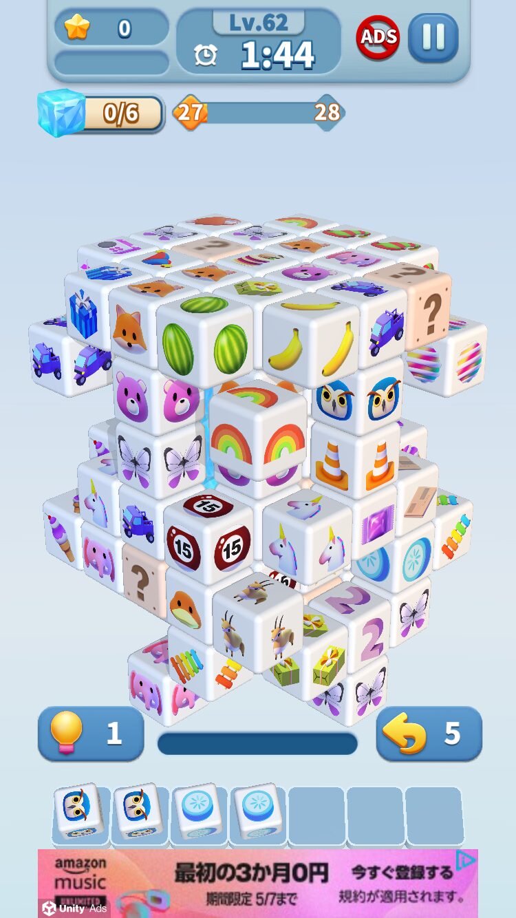 同じ絵柄を揃えてブロックを消していく、というよくある単純パズルゲームで、3Dで裏側や上面/下面からも絵柄を探せるというのが特徴です。
