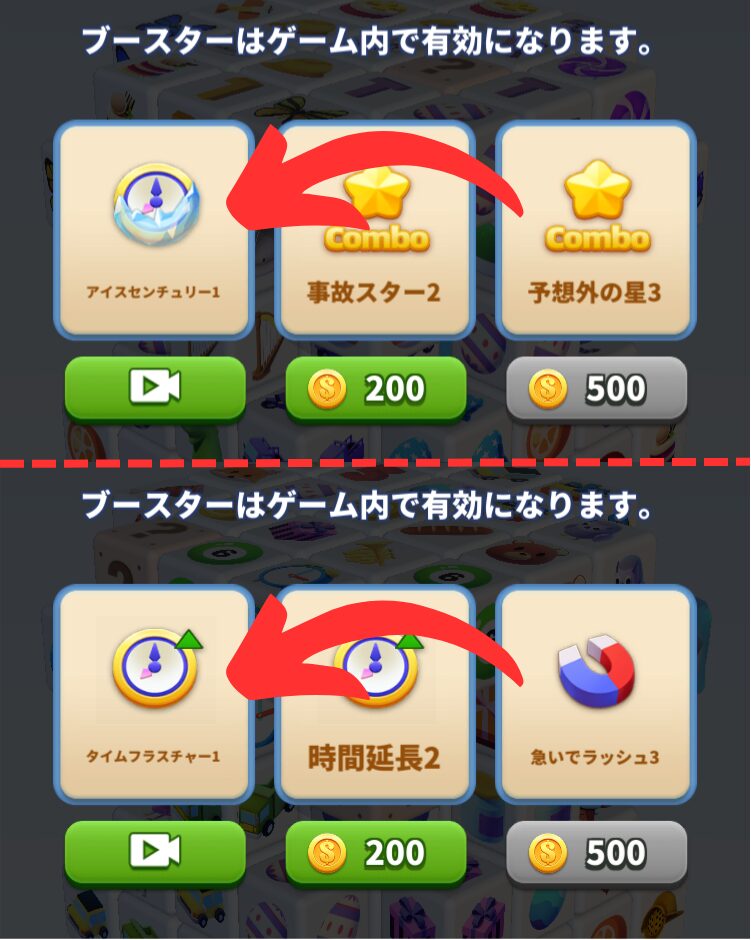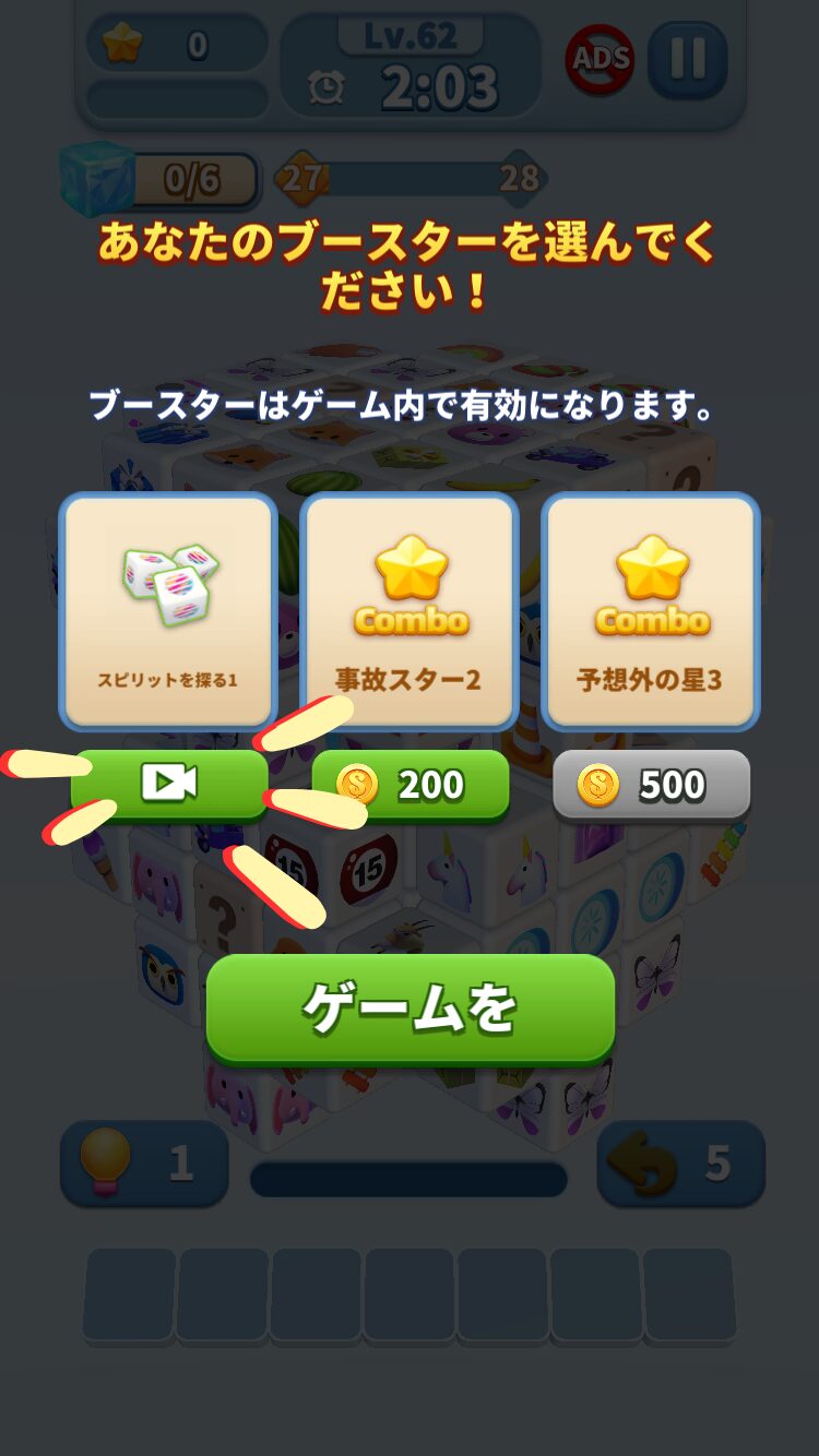 制限時間が短くてクリアが難しいステージは、広告視聴でゲットできるアイテムも活用しましょう。