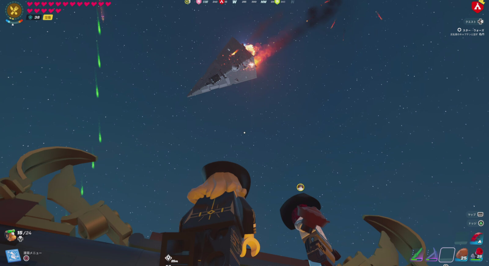 レゴ フォートナイトにログインすると、いきなりスターウォーズの戦闘が始まりキャプテン・ブラヴァラと出会うというストーリーが展開され、さながらバトロワのワンタイムイベントのような迫力でした。