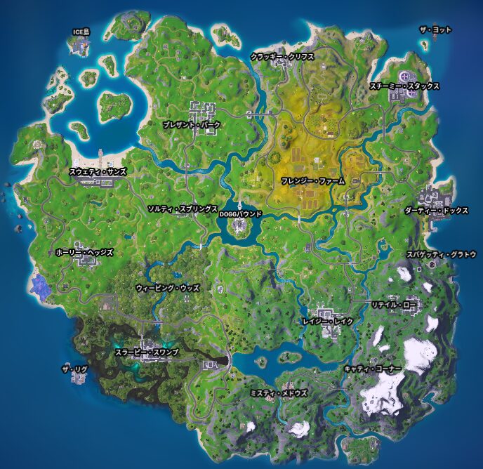 チャプター2では、サッカーコート下がスパイ組織の拠点になったり、ドクター・ドゥームが支配したりといろんなことがありましたが、リミックスではサッカーコート下に拠点があるバージョンのプレザント・パークとして存在しています。