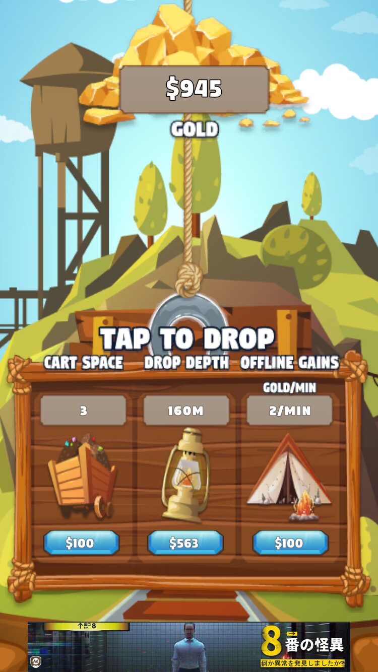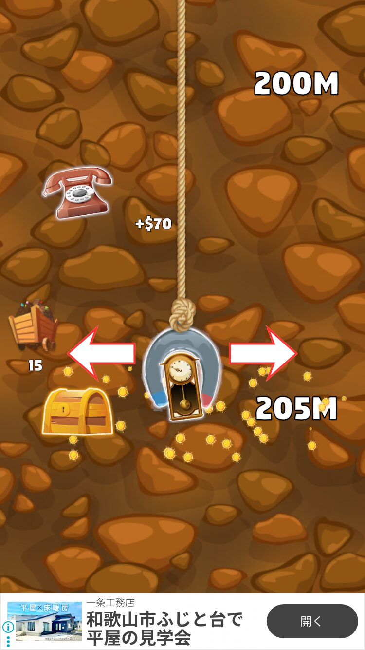 磁石でお宝を引き寄せ、ゲットしたお宝を換金し、レベルアップしてさらに深くまで進んでいく、という単純ゲームです。